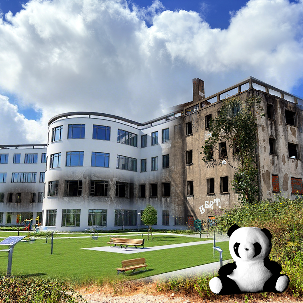 The artistic artefact Memórias do Futuro – Sanatório de Mont’Alto is part of the Cid@d’ART project, which focuses on urban digital photography. It is an intervention that takes place at the Mont’Alto Sanatorium in Valongo, Portugal — a historical site currently in a state of architectural ruin and cultural decay. The work proposes a speculative dialogue with the building’s past, envisioning alternative futures for this abandoned space grounded in principles of ecological sustainability.